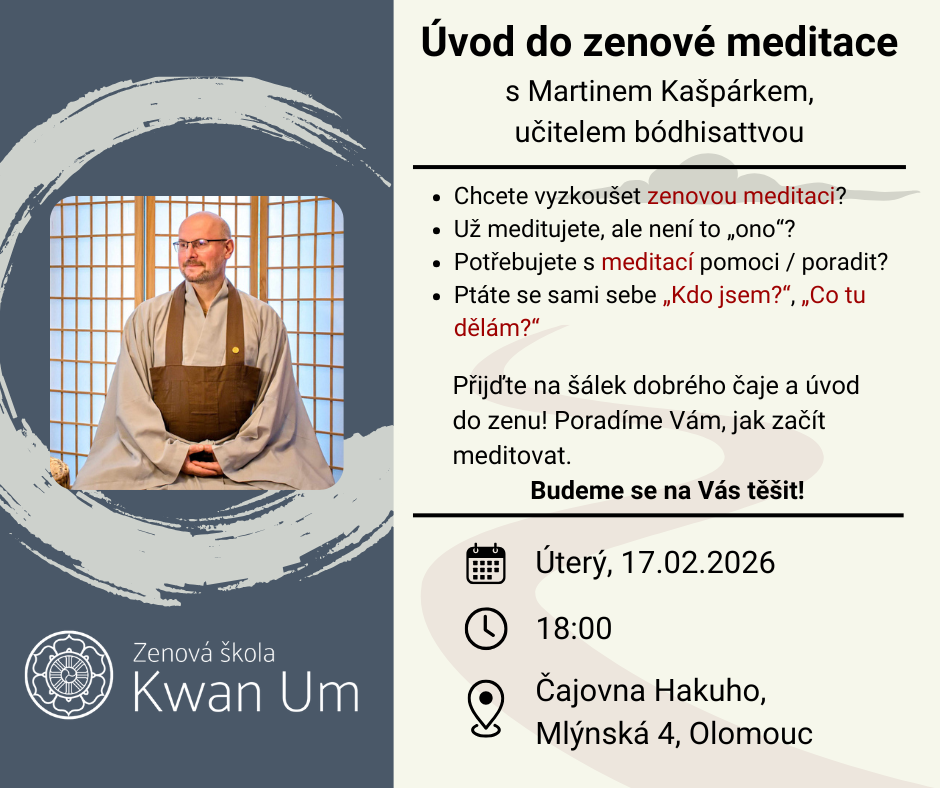 Zveme vás na otevřené a přátelské setkání se zenovou školou Kwan Um, kde společně projdeme základy zenové praxe a dáme prostor i otázkám a sami si i meditaci vyzkoušíte