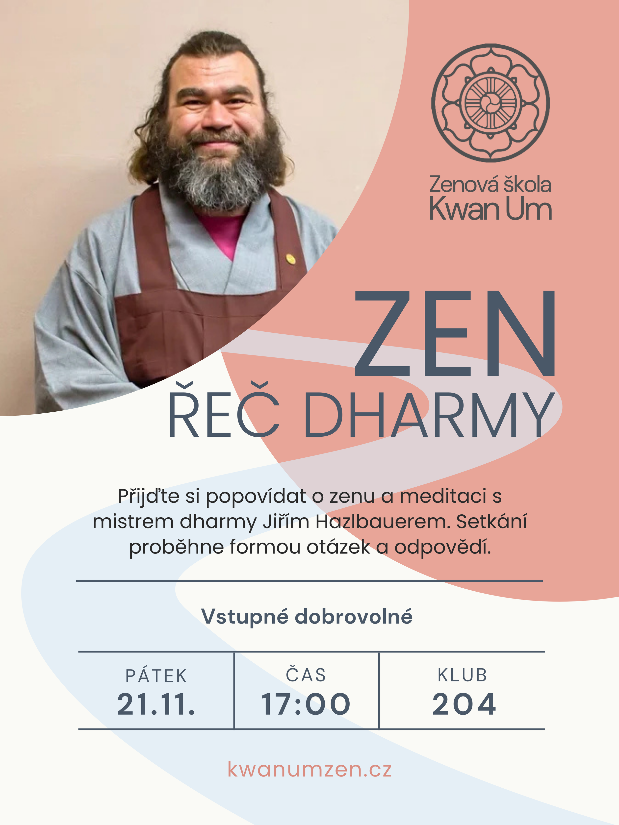 Přijďte si popovídat o zenu a meditaci s mistrem dharmy Jiřím Hazlbauerem. Setkání proběhne formou otázek a odpovědí.